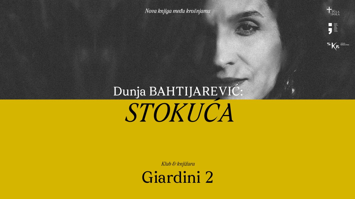 Glazbenica, pjesnikinja i prevoditeljica Dunja Bahtijarević s debitantskom zbirkom poezije “Stokuća” (H.D.P) u srijedu, 24. rujna u 20:00 sati gostovat će u Klubu-knjižari Giardini 2. Gošću programa Nova knjiga među krošnjama u kojem se predstavljaju tek objavljena ili manje poznata izdanja na domaćoj književnoj sceni pulska je publika imala priliku upoznati kao glazbenicu čudesnog glasa kada je sredinom lipnja, povodom proslave Bloomsdaya u Giardini 2, zajedno s filozofom Bartholomewom Ryanom izvodila tradicijske pjesme na irskom, engleskom i ladino jeziku. Ovoga puta Dunja Bahtijarević dolazi u ulozi pjesnikinje s kojom ćemo voditi razgovor o lutalaštvu i nomadizmu, (ne)mogućnostima pronalaska uporišta – vlastite kuće u rodnom kraju, obitelji i drugim ljudima; strahovima koje rađa izmještenost, ali i slobodi kao imperativu. Nakon razgovora neraskidiva veza između pjesništva i glazbe koja čini osnovicu umjetničkog stvaralaštva Dunje Bahtijarević doći će do izražaja u performansu u kojem će autorica govoriti stihove, spajajući ih s izvedbom tradicijske glazbe suvremenog izričaja.